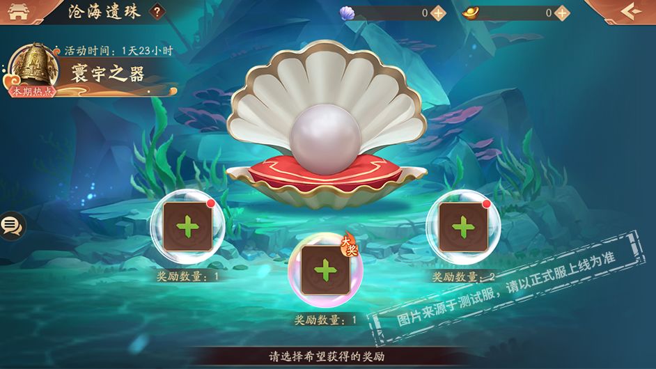 活动期间,可通过活跃任务、采珠商城获得珍珠贝,消耗珍珠贝道具可进行沧海遗珠活动抽奖。