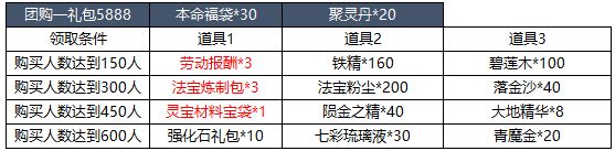 【活动简介】活动期间内,道友们可购买活动界面的团购商品。当购买团购商品的人数达到一定数量时,购买过该商品的道友们可以额外领取相应奖励。