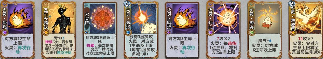 一般情况是依靠火牌的高输出优势,4-5动速杀。但在已知对面杀死自己之前无法击败对手时(需要算自己伤害和预估对面伤害),可以靠护体丹/驱邪丹,或转混元火土(只需要多留3-4张牌即可转型)来获得胜利。