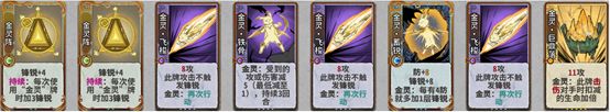 天髓,金阵铁骨,蓄锐蓄锐,飞梭鼎,补位金伤害牌