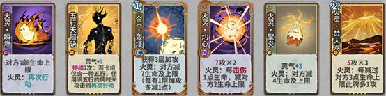 如果2动灼心会正好被对面防挡,可以提前1动瞬燃灼心,再瞬燃天髓。这种情况同样适用于不上火阵上护体丹(且天髓1级)时,因为后面的牌不需要享受火阵加成了。另外,1动瞬燃灼心,3动聚炎护体丹的打法同样是针对曜灵4动五雷的打法。同时,3动护体丹也可应对丹燕、雷尘等速杀阵容,但效果不如混元火土(在后面讨论)稳定。