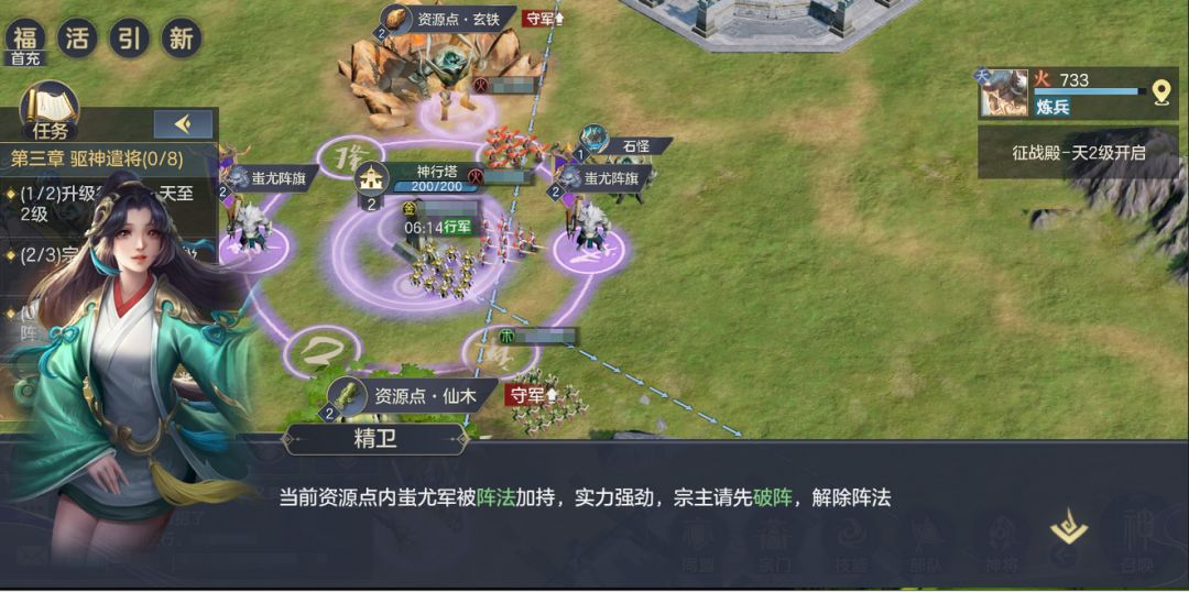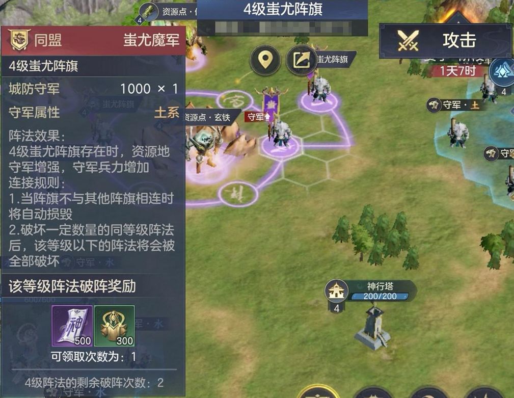 在占领资源地之前有时需要破除的蚩尤阵法,也能获得大量唤神符,用于精英召唤。