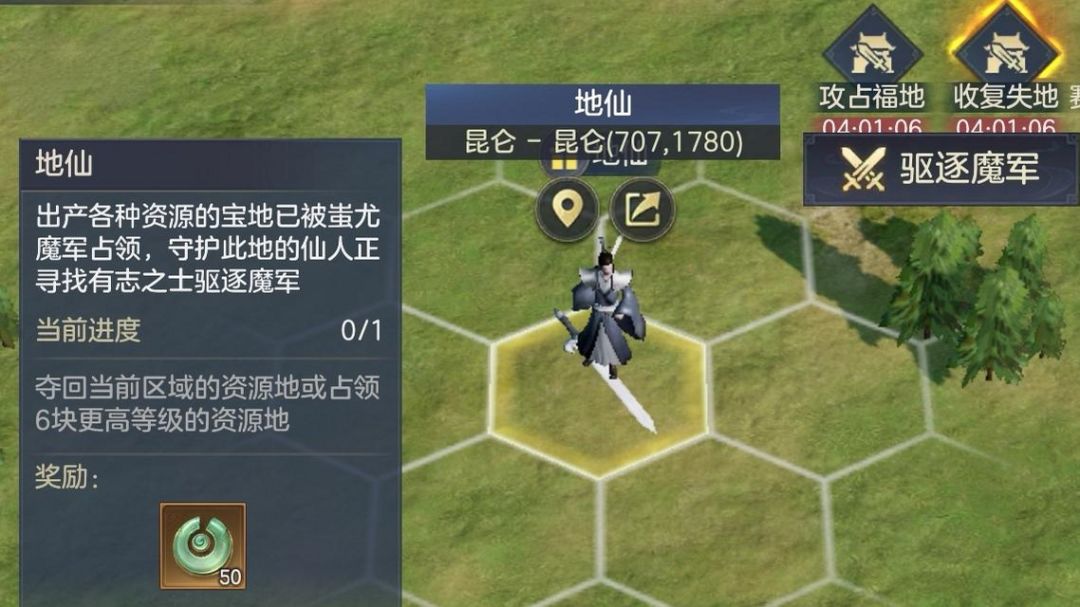 在完成仙路之始活动的同时,还可以领取其他奖励内容。地图上有多个散落的地仙任务,占领相应资源地即可完成,每完成一次给50玄玉。