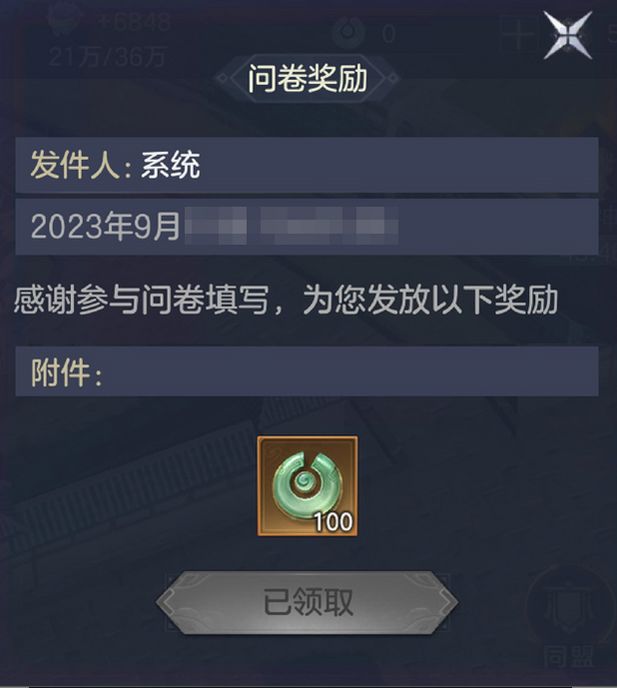 通过回答游戏内的问卷,不仅可以直接向官方吐槽游戏内容,还可在邮件内领取玄玉附件。说不定随便完成了一个日常操作,就可以领取成就奖励的玄玉和灵石了;另外在一些节日也可以获得惊喜奖励。