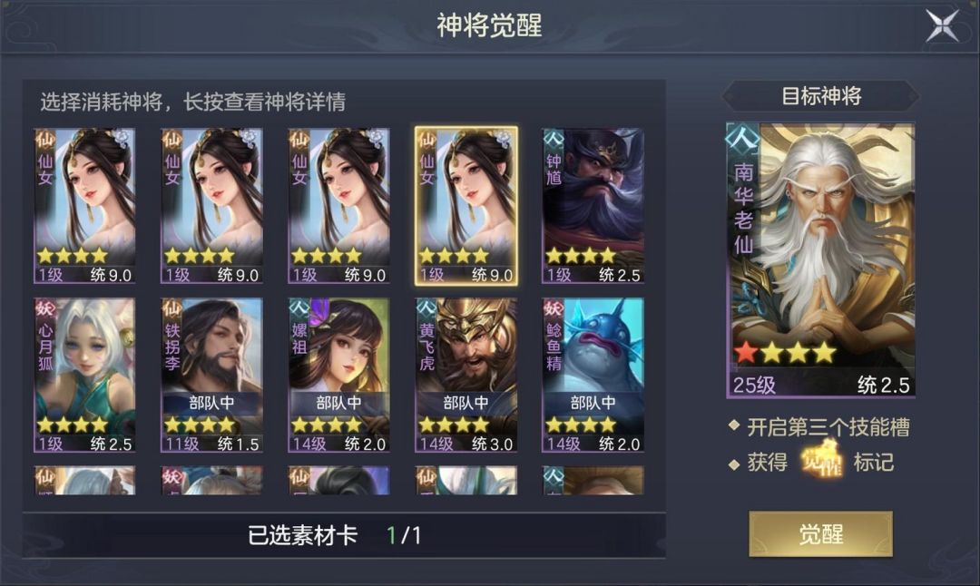 仙女是四星神将的觉醒素材,可以开启三技能(一般情况下)