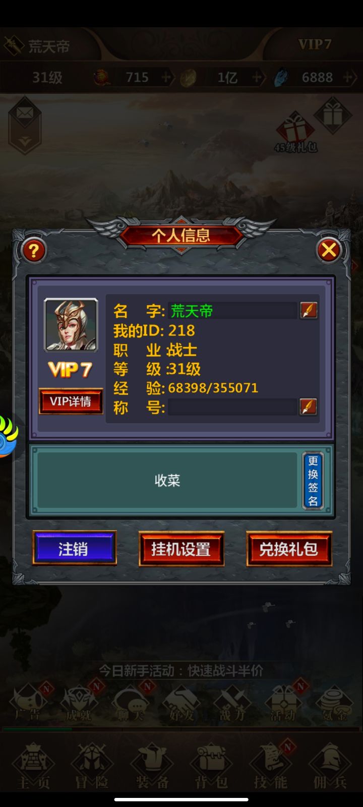 第一次玩跟随的攻略,先建角色,三职业除了天赋不同,技能都能通用,现在大佬们推荐战士,因为同战力战士吊打法师猎人,装备和技能都一样可以穿戴学习,战士可以带猎人的技能,多重射击,非常好用,开荒挂机非常适合,接着就是上线领礼包和兑换码30元充值卡加6元充值卡,把虽有能点的都点了,早点拿送的新秀套装,这样推图就容易多了如果白嫖玩家可以先用群公告有兑换码(兑换方式-点角色名-兑换礼包-输入兑换码,小技巧提前加群先领取,最好的就是提前到一个区熟悉熟悉游戏管理,升到30级,提前找客服463896357领30级兑换码大礼包