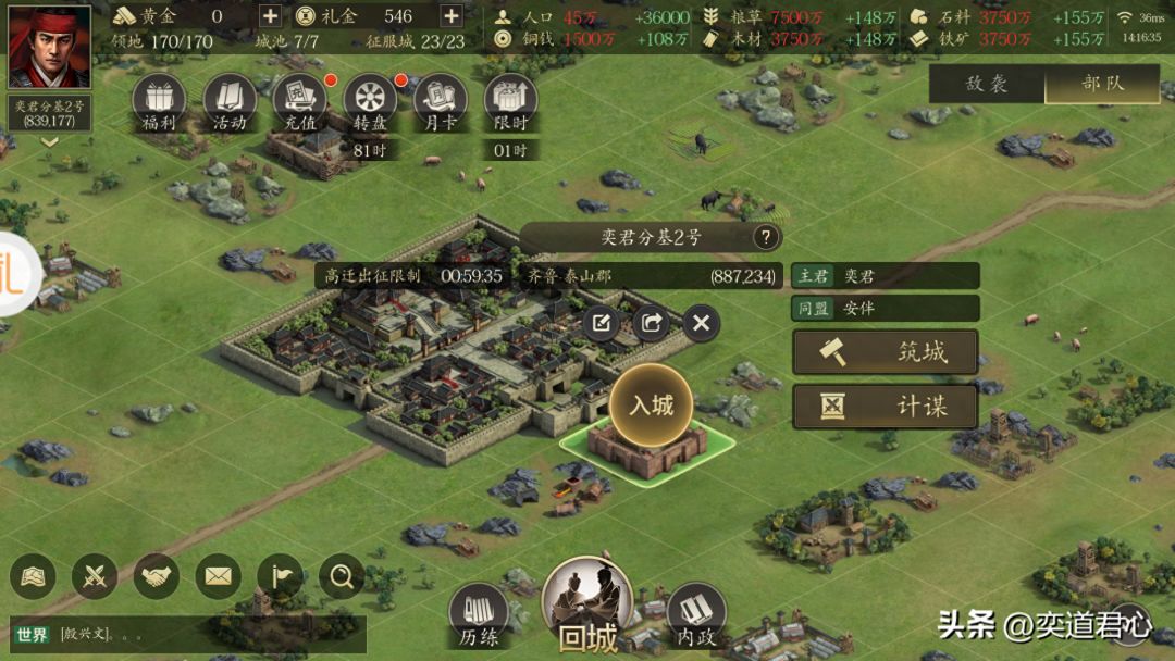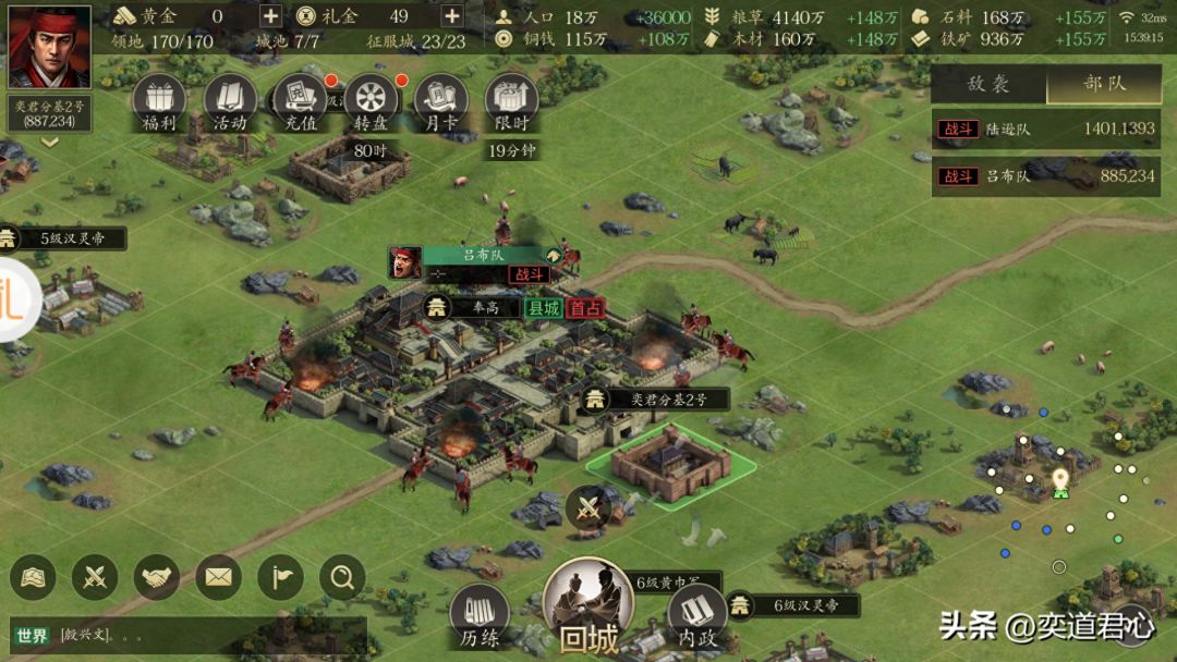 想要在《王者之心》里以最好的状态去攻城,必须先把自己的据点给搬到目标城市的旁边。幸好仓库里备了足够的高级迁城令,轻轻一点就堵住了吕玲绮藏身县城的城门口。吕布之前被我派到了凉州,而吕玲绮目前是在齐鲁的,只能让他带着轻骑兵一骑绝尘赶过来。