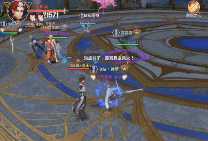 第12关:武魂殿--优先击杀炎,其次是另外三位魂师,邪月拉在外围(仇恨不固定),点名红圈技能,注意躲避。其间需要注意胡列娜的狐狸行走路径,以及邪月施放的冲刺攻击,攻击方式为长条形锁定技能读条,引导至场地上散落的月刃单位后方进行躲避;邪月血量降至50%时会施放武魂融合技能,释放完立即在场地中央集中,被冲刺锁定引导的玩家,带着攻击将场正中央的月刃击破,随后奶妈施放群体治疗,抬高全员血量,随后还会有2-3次冲刺攻击,被锁定玩家引导出人群,场边有月刃可以躲避。然后集火邪月。
