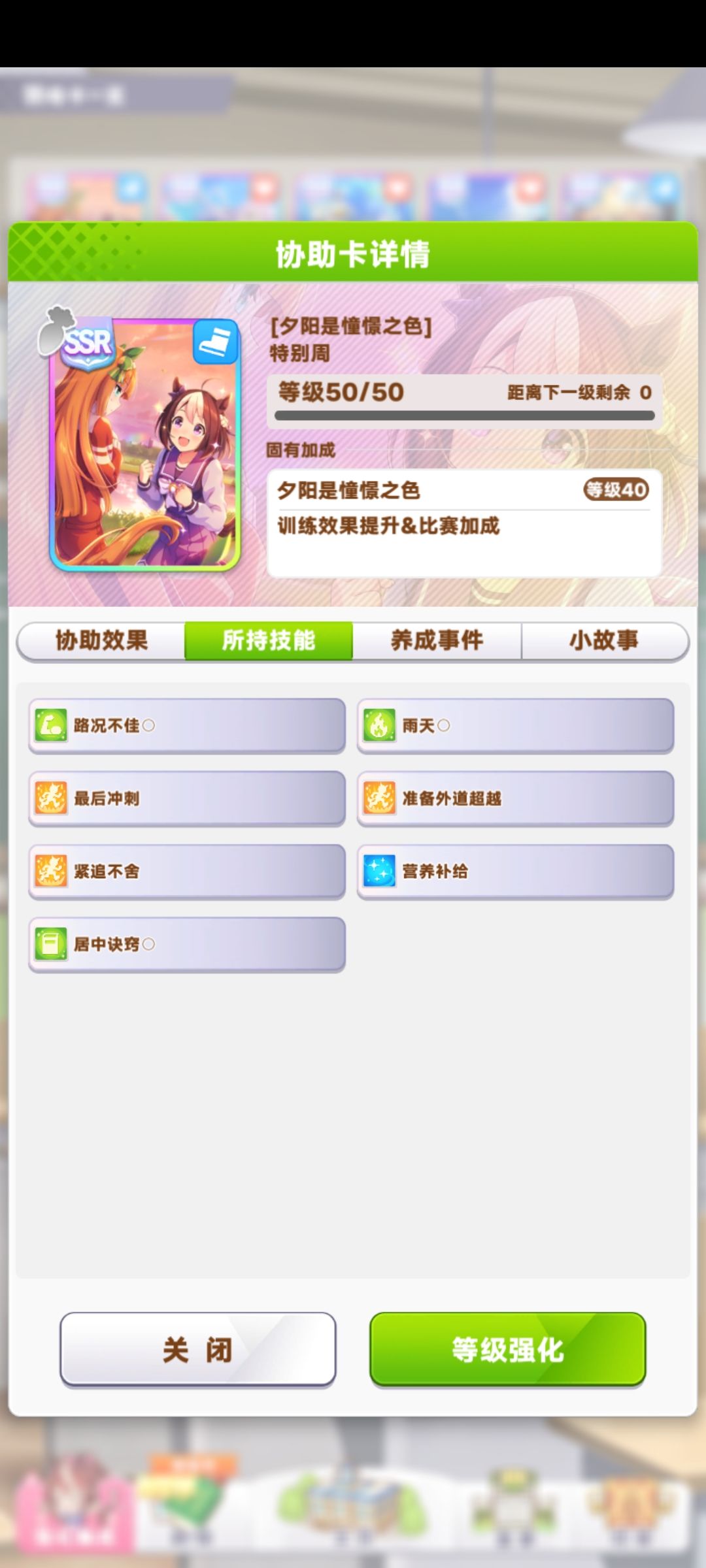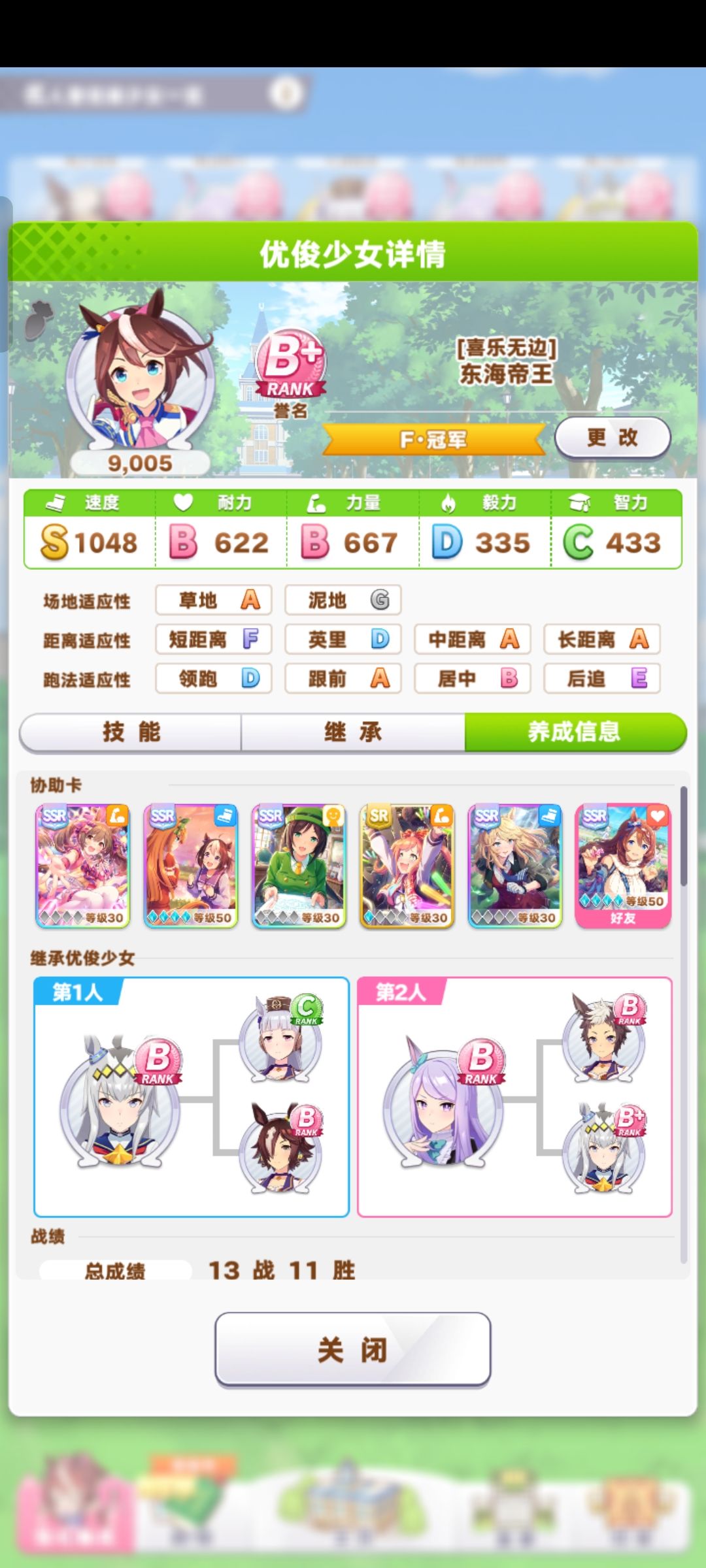 注意啊,是跟前跑法,别带什么进王的速卡和铃鹿的速卡,那是领跑的技能。