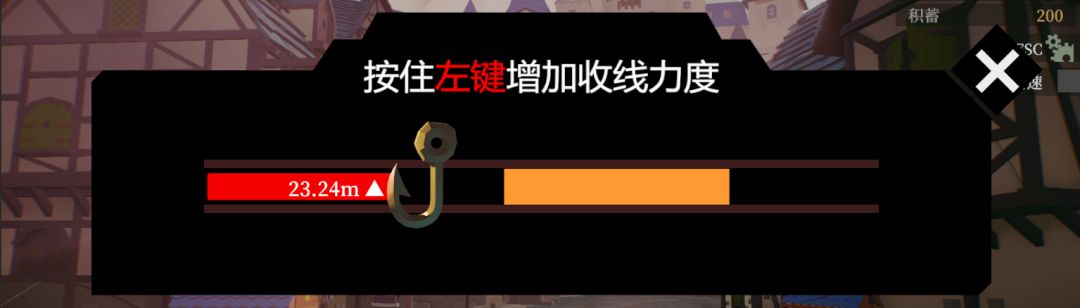 钓鱼就是让你拉力保持在黄区,然后把鱼的距离降到0就捕获了