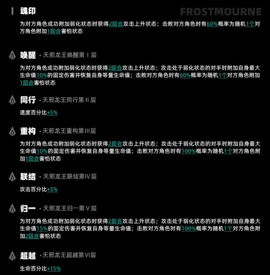 天邪龙王主要魂印提升为一魂和五魂,建议资源充足的顾问可以试试抽取一魂,或者攒碎片换一魂也不错的选择。