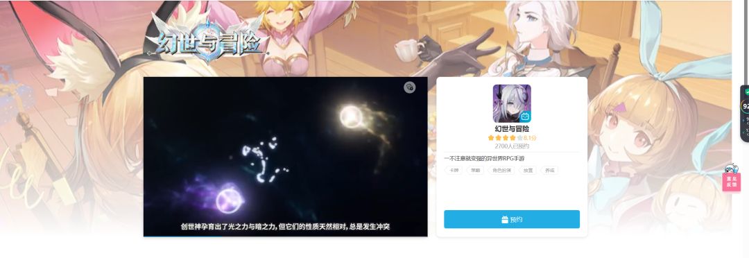 总之呢,《幻世与冒险》是一款非常值得体验的游戏。无论是没有尝试过放置类游戏的新手亦或是放置类游戏爱好者,都能在这里找到属于自己的游戏乐趣。顺便一提,游戏预约已经正式开始,8月刚结束限量删档计费的光启测试,公测时间估计也快了,早玩早享受,我在黎明大陆等你——