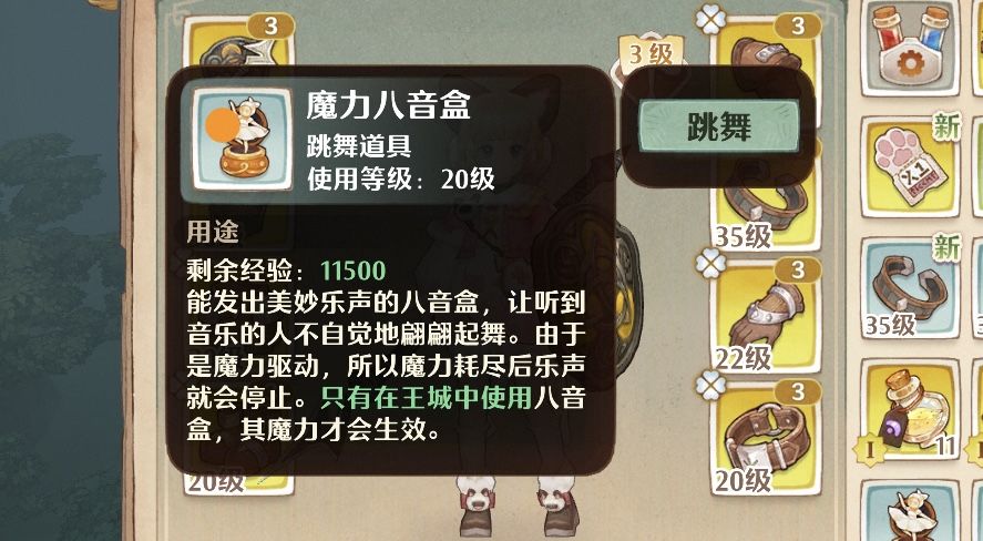 4、参加完上述玩法后,还没达到41级的话,就到广场【跳舞】(八音盒可以从前面的护送任务获得)