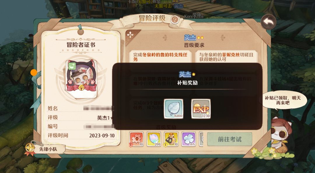 以上是受限经验部分,经验条拿满了就行,不是非要全做完,我们可以把精力侧重在下面的不受限经验: