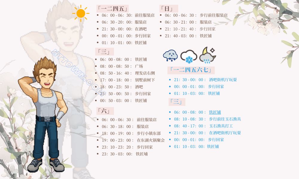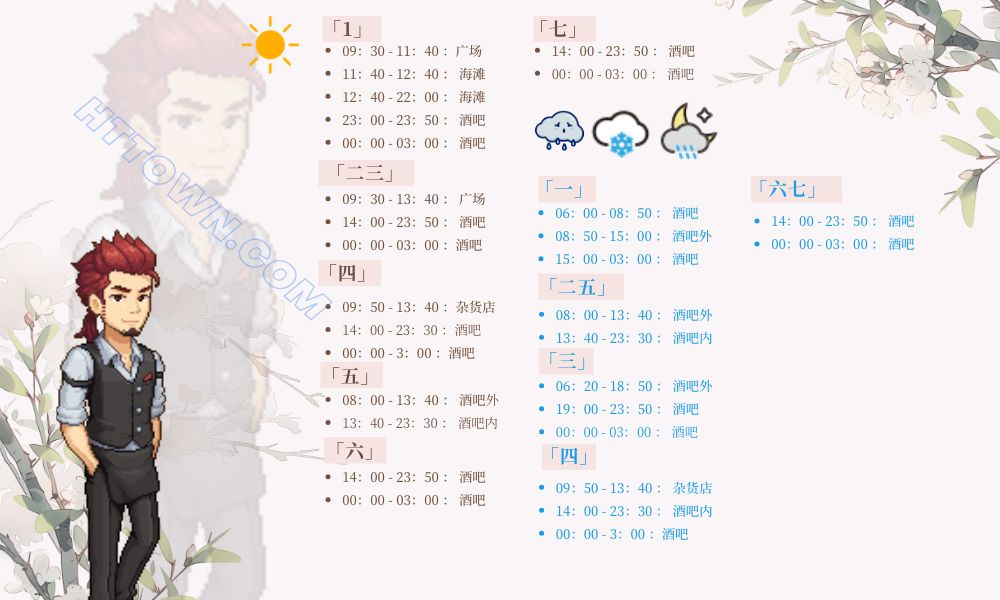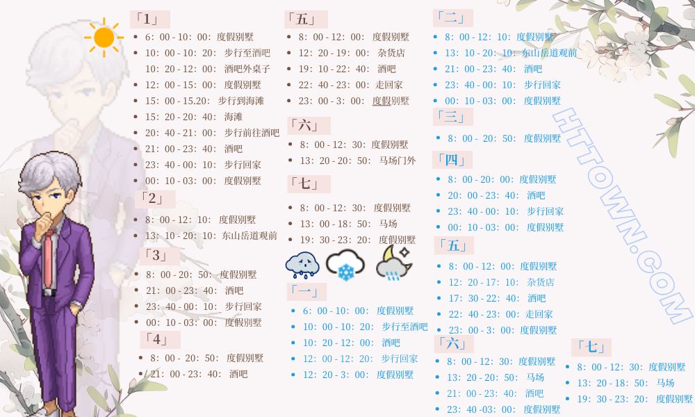 之前做了个人物喜好图自己不是很满意,所以现在重新更新人物的信息、喜好(礼物)和行程的攻略图,希望大家喜欢,如有错误的地方欢迎大家指出我会继续修改。