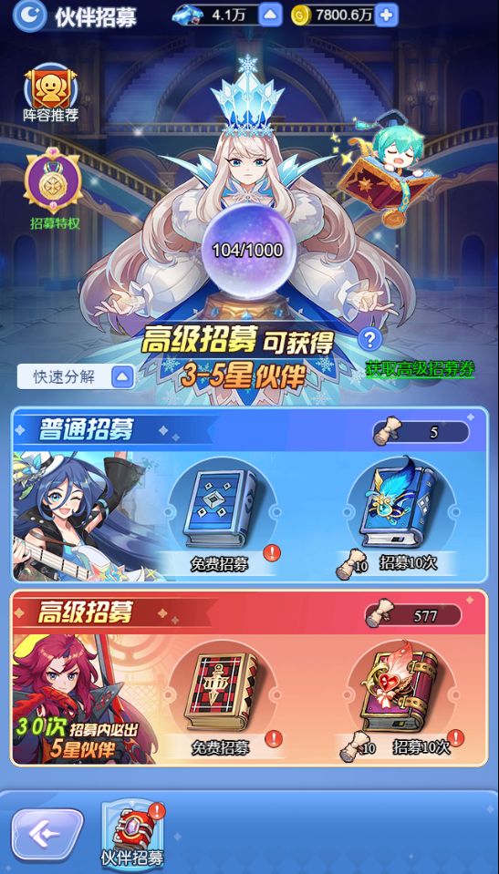 3. 伙伴获取方式:伙伴招募、阵营召唤、神秘商店、贵族等级