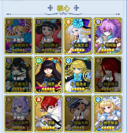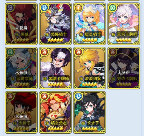 * 由于伙伴数量众多,本次仅展示五星核心。