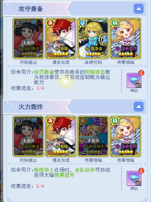 4. 伙伴图鉴:五星核心23个,五星精英16个,五星优质8个,四星良品10个,二三星普通10个。
