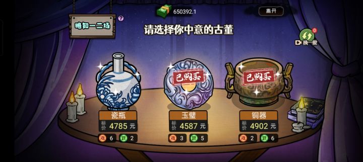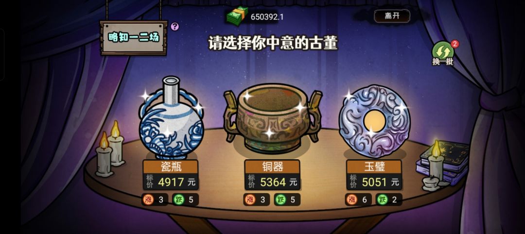 古董玩法大概摸清了,你主要看那个涨和跌,不要选涨高的,因为那特喵是和对方讲价对方涨价,亏,吃过亏😭