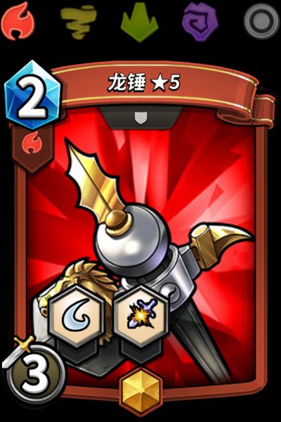 「龙锤」是黄金品质道具卡,本期上线的有红、黄、绿、紫、无色阵营。【粉碎】能够在攻击命中后直接破坏敌方的装备,而【贯穿】则是在破甲时不用担心溢出伤害的浪费。(需要注意无色阵营的龙锤为3费)
