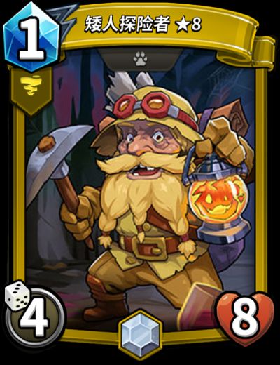 「矮人探险者」是一张黄色阵营白银品质怪兽卡。作为一张1费怪兽卡,不论是前期用于站场,还是阵亡或献祭时返还的1点费用,都能够带来不错的收益。满级后最高的4点的随机伤害,配合【强运】或【命运之力】技能的卡牌,也能有不错的伤害哦。