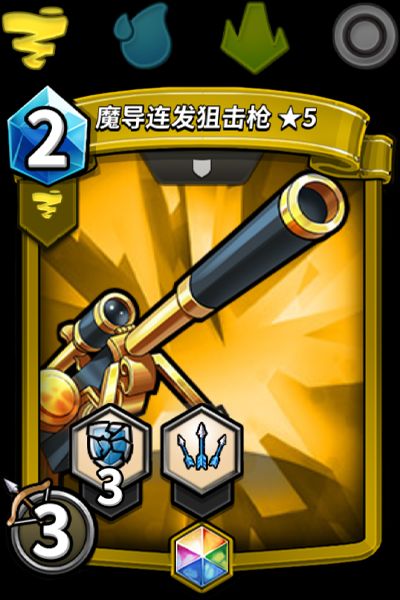 「魔导连发狙击枪」是彩钻品质道具卡,本期上线的有黄、蓝、绿、无色阵营。【剑雨】可以同时攻击多个后排目标,且无视嘲讽和潜行,【破甲】则是进一步提升了攻击准度和伤害,给后排角色装备使用时,能够给敌方后排带来更大的威胁。(需要注意的是蓝色阵营为3费,无色阵营为4费)
