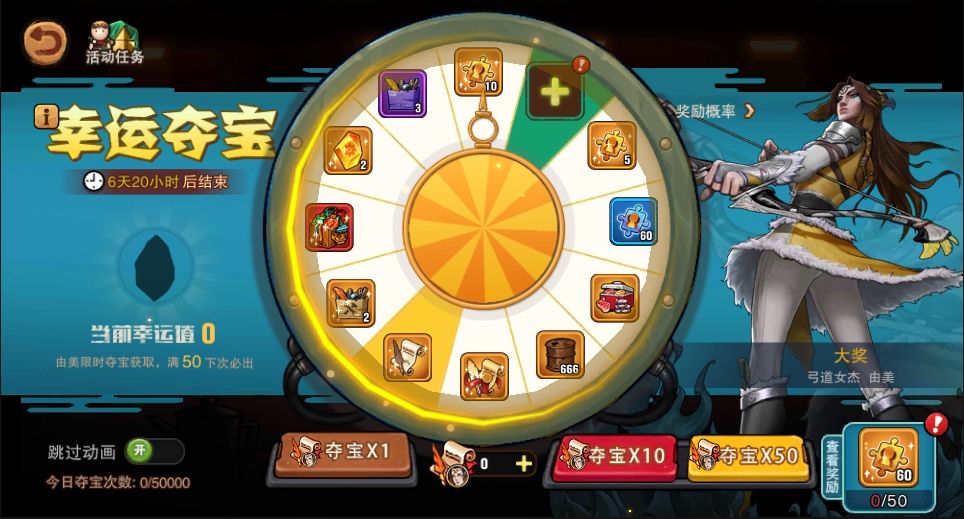 1.活动期间参与限时夺宝有几率获得由美(51次保底),同时达到指定抽卡次数还可领取额外进度奖励