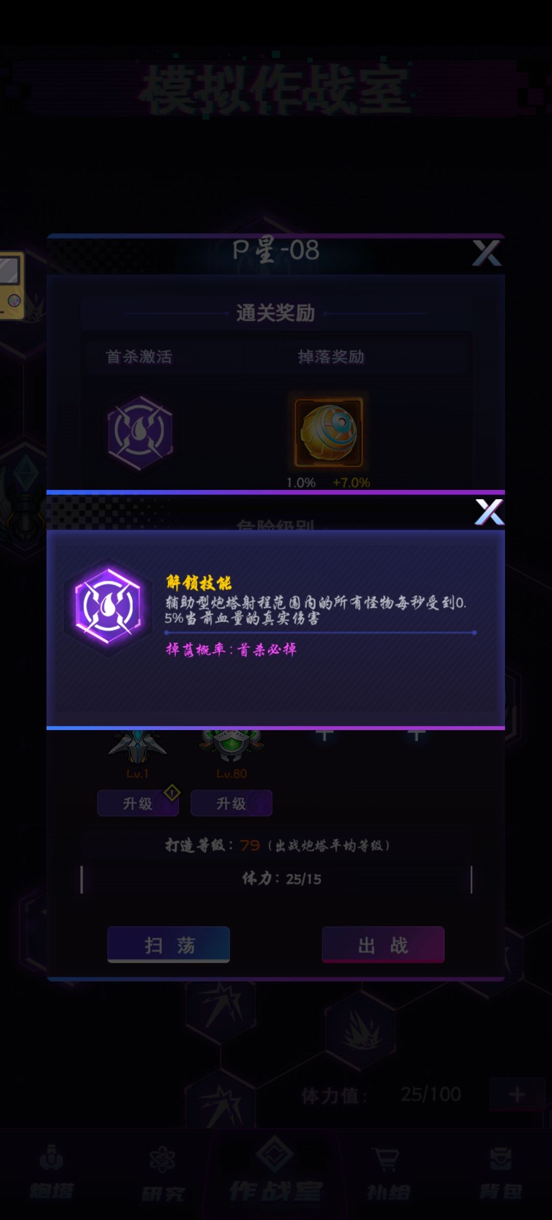 主线肉鸽技能每60关一个,每次轮回共6个技能 每个5级 前期建议拿射程和攻击(全体加攻那个,名字就攻击)技能下面的塔没事出去可以对换(换炮塔出战顺序)建议换个主c