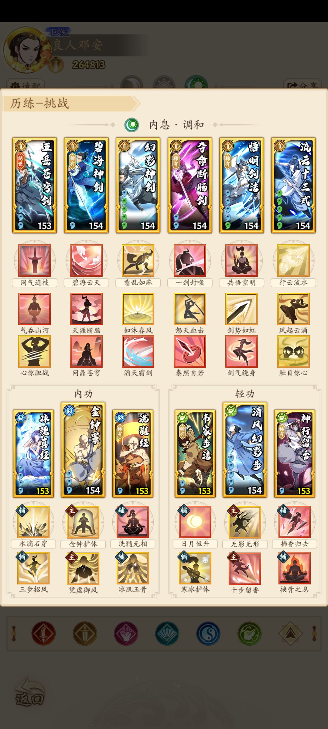 因为主出手,气势选择十步留香,主要因为版本加强,再就是碧海夺命的招式伤害不高,且精进不多所以没带先觉
