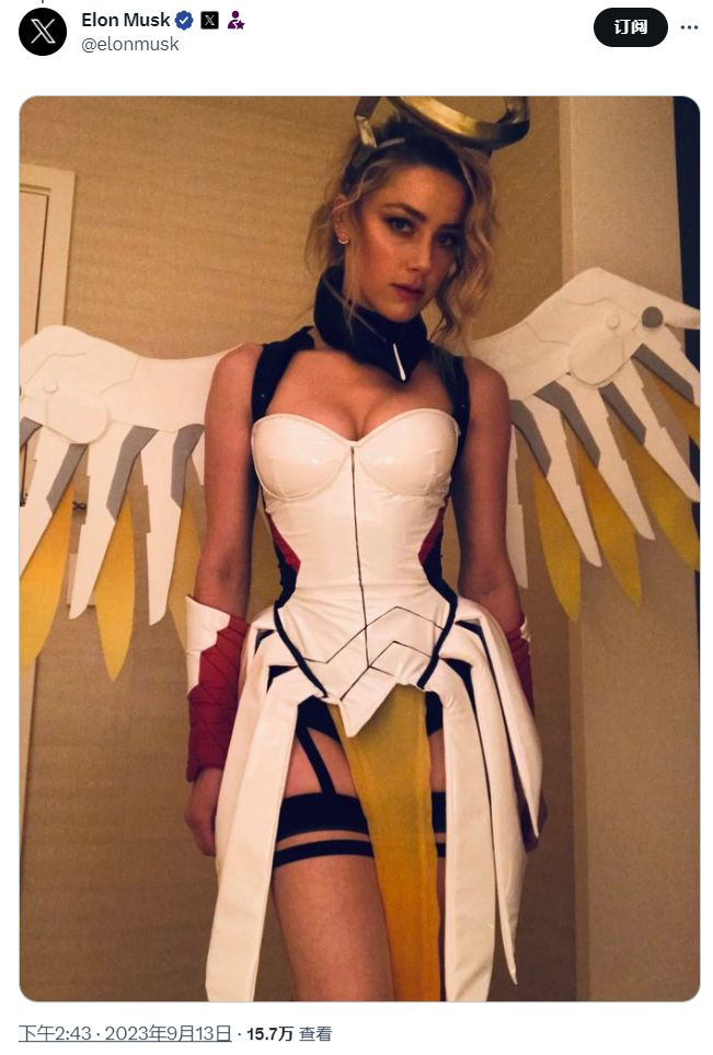 更新:马斯克在推特上确定了该消息,并且还直接发布了一张艾梅柏cos“天使”的照片。