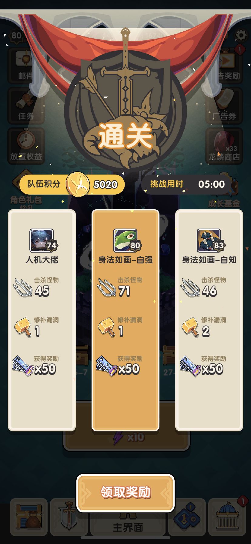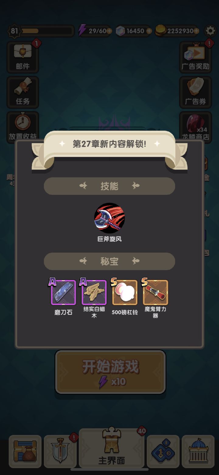 这两天光通关了.突然想到一个思路.我虽然没有狐狸拿着剑仙这个月也爬过了35层.公会里很多朋友都没过去.目前我主线到了26关巨斧.如果不打也不会解锁图鉴.后面27-30.根须、彩喷、地裂斩.感觉也没有这么好用.如果不继续推图我就能省下几个封印石.不污染技能库.这样爬秘境会不会更容易选到好的技能.会不会更容易通关一些.当然奥义还要看脸.影武好用.目前没冰女.都带着应该更快出奥义.