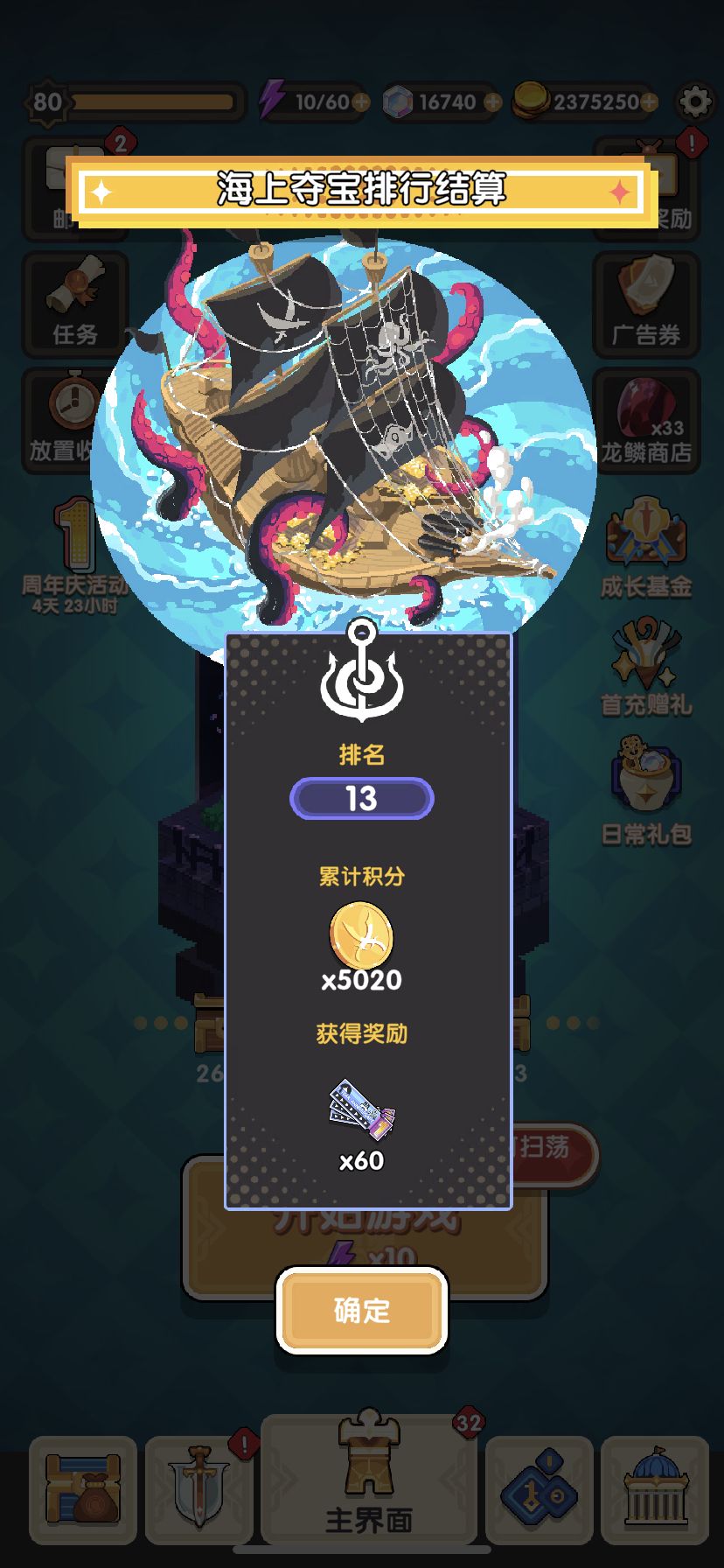 海盗船活动.我和队友虽然不能打特别高但每天都能上榜.能拿到资源就行.再加上每天bug修复给一些.差不多都可以换干净.还有扭蛋给S.给皮肤的.整挺好.