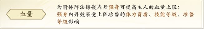 每个阵可以镶嵌8枚内丹,同一个兽魂聚灵阵法中不能镶嵌相同属性的内丹;