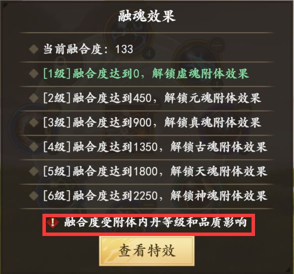 内丹融合度内丹的品质和等级会影响融合度。内丹可以随意拆卸,更换且分解返还升级所消耗的全部魂晶不会有魂晶数量的折损。
