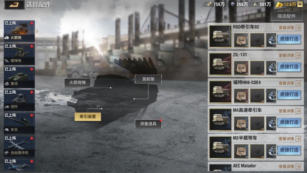 火箭炮中的牵引装置会加入正常火炮的配件,所以也会有自由与强权的装备,我们只需要选择秩序的配件,那就是火箭炮的配件