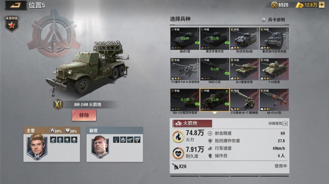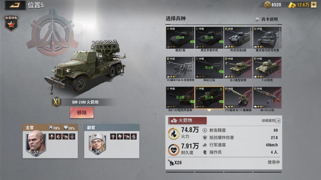 这个阵容就比较中规中矩了,双火炮专属军官,主要就是用来打伤害用,没有其他特别的原因,让守塔与打步兵更强了而已