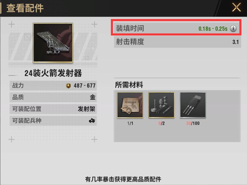 发射炮架是减少装弹时间属性的,也都只有一个属性,跟随着配件的品级使用就好