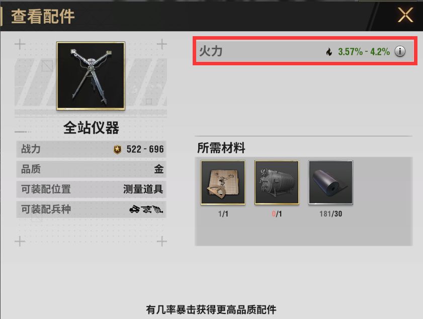 测量道具的装备,也只有一个火力的属性,跟随着品级使用即可
