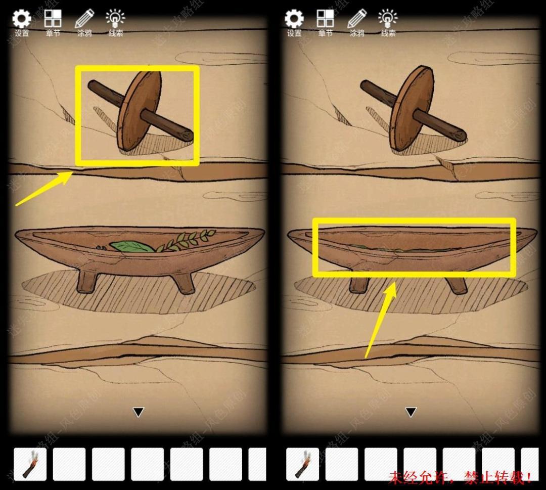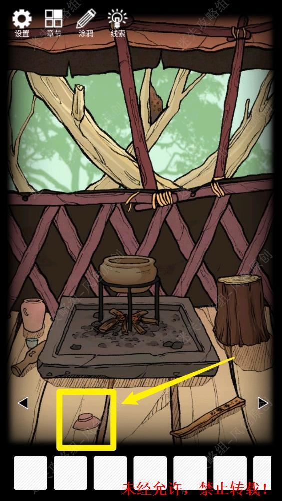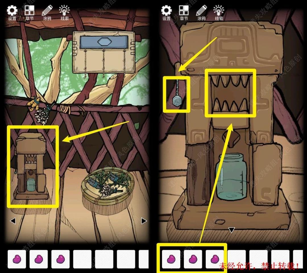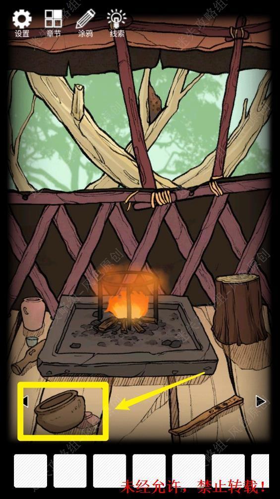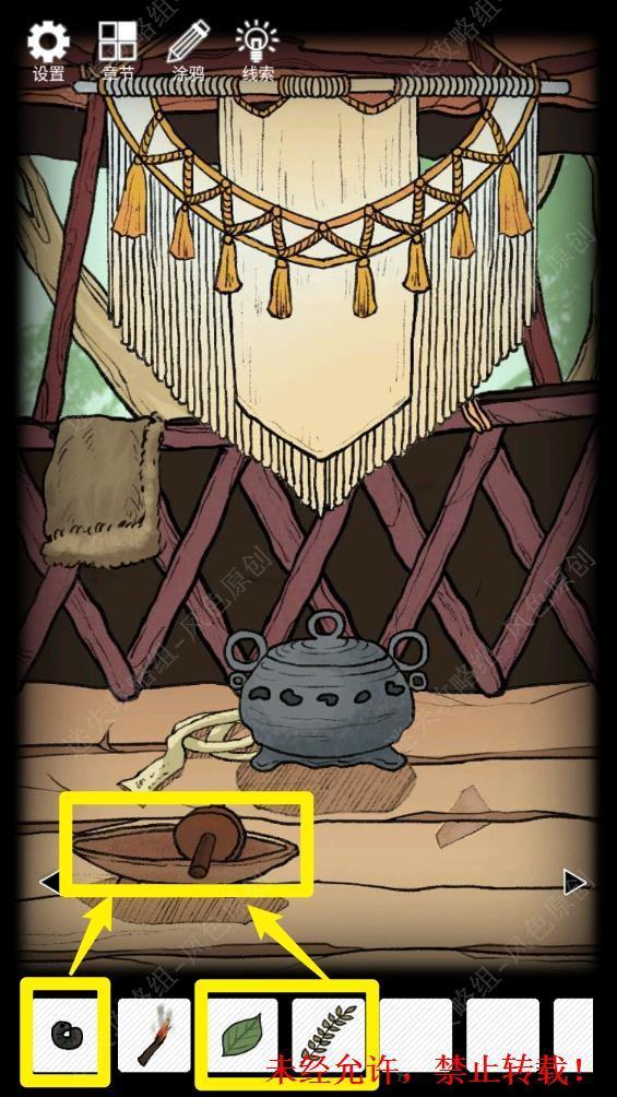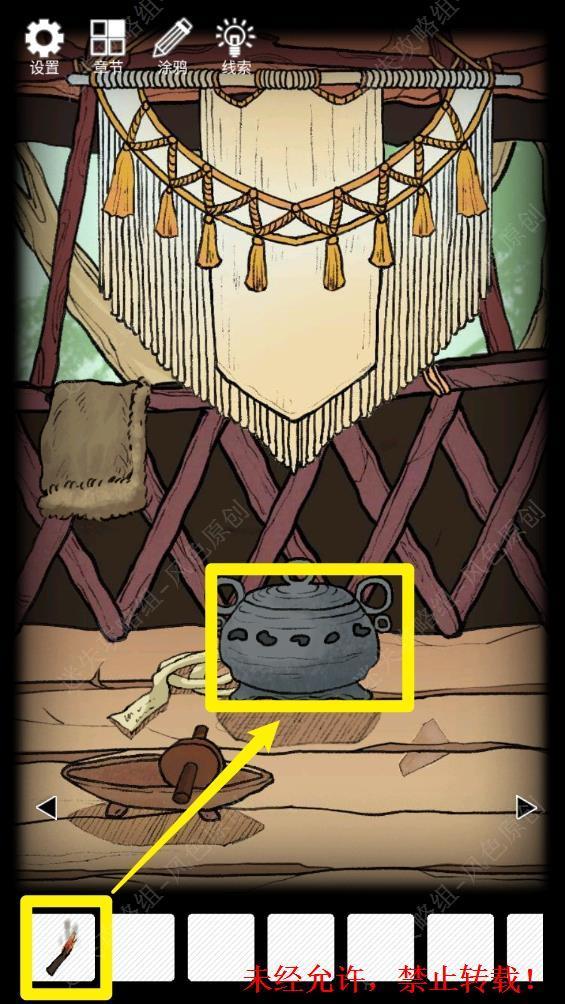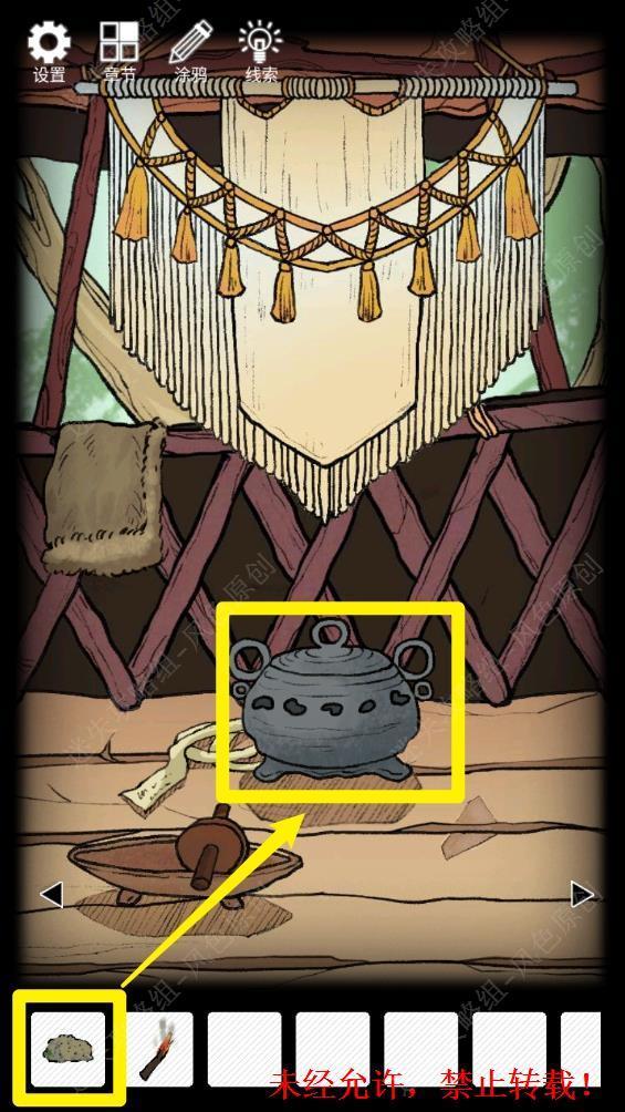 109.将【果汁】放入瓦罐中加热。切换场景后再返回,获取瓦罐中的图案线索提示。 109 109.1