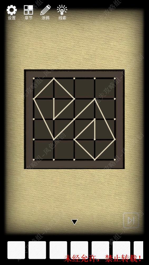 124.点击图中的柜子,需要参与一笔画小游戏,按照图案的上下顺序来在四个格子中绘制出对应的图形。 124