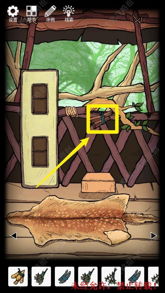 102.点击下图场景的毛毡数次,发现并获取掉下的【钻火棒】。 102 102.1