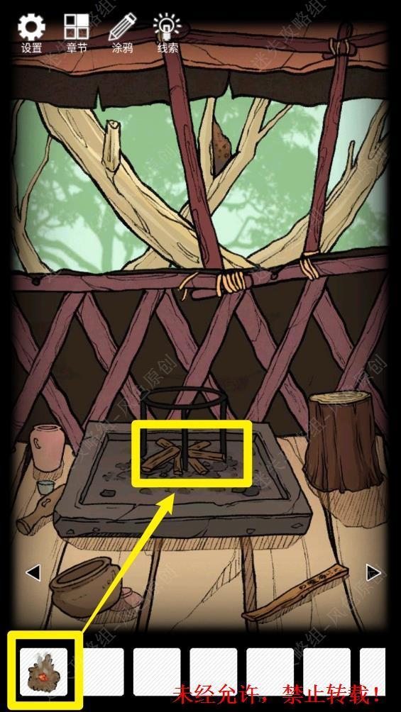 117.使用【点燃的树枝】点燃香炉,切换场景后返回,发现图案线索提示。 117 117.1