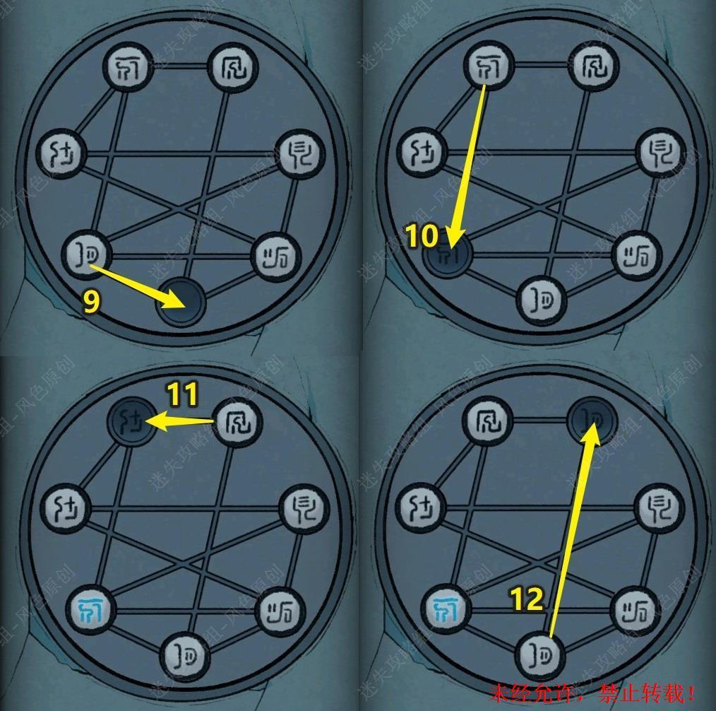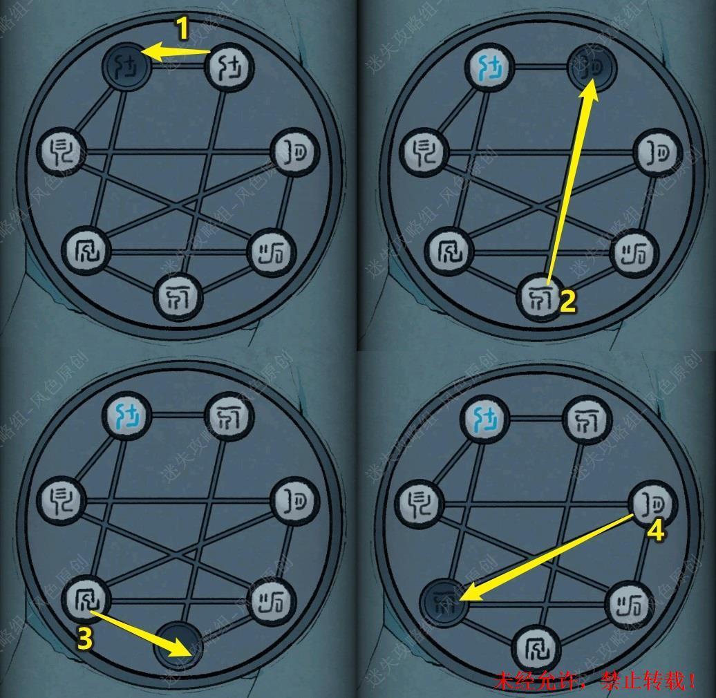 132.点击熊雕像,参与小游戏,共有三关,上方的若干图案按照固定的顺序逐次出现,需要按照上方图案出现的先后顺序,找到并按顺序点击下方对应的图案,如第一关的图案出现顺序与点击顺序为下图所示(注意小游戏下方的图案是随机的,不一定和图中的顺序完全一致,故图片只做示例,理解思路即可): 132 132.1
