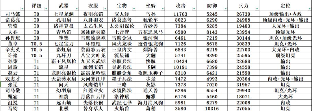 。同时对以下各位主公的数据提供,将领分析,强度分析做出衷心的感谢: