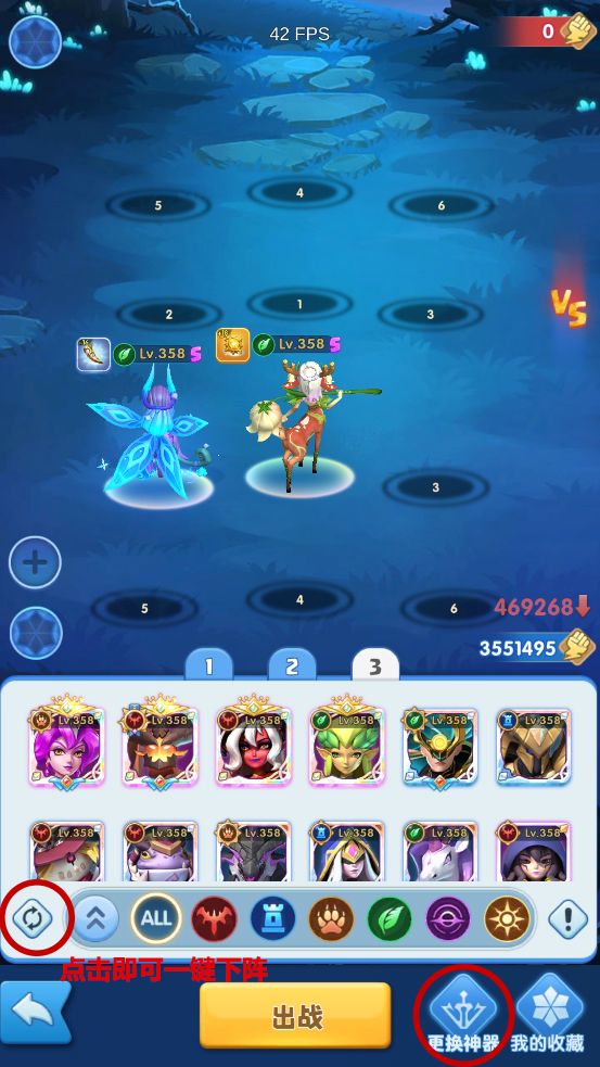 1、 新增更换神器按钮:玩家可通过点击该按钮更换出战英雄的神器,也可以给未穿戴神器的英雄穿戴神器(通关冒险20-1后开启)