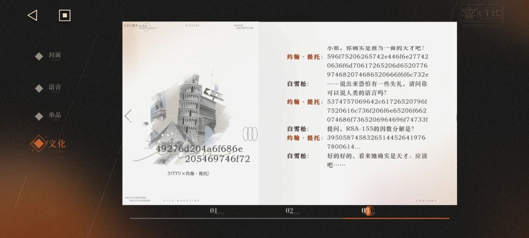 缺号的地方是一些罕见的人类语言,另外文化03中提托的最后一句话不是十六进制。