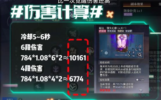 配合魔术师被动梅花和方块的冷却缩减和伤害加成。基本5-6秒就可以释放一次。12秒两次,比1次觉醒伤害还高。