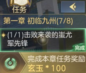 解决小怪,完成第一章任务,收入100玉和1000唤神符。