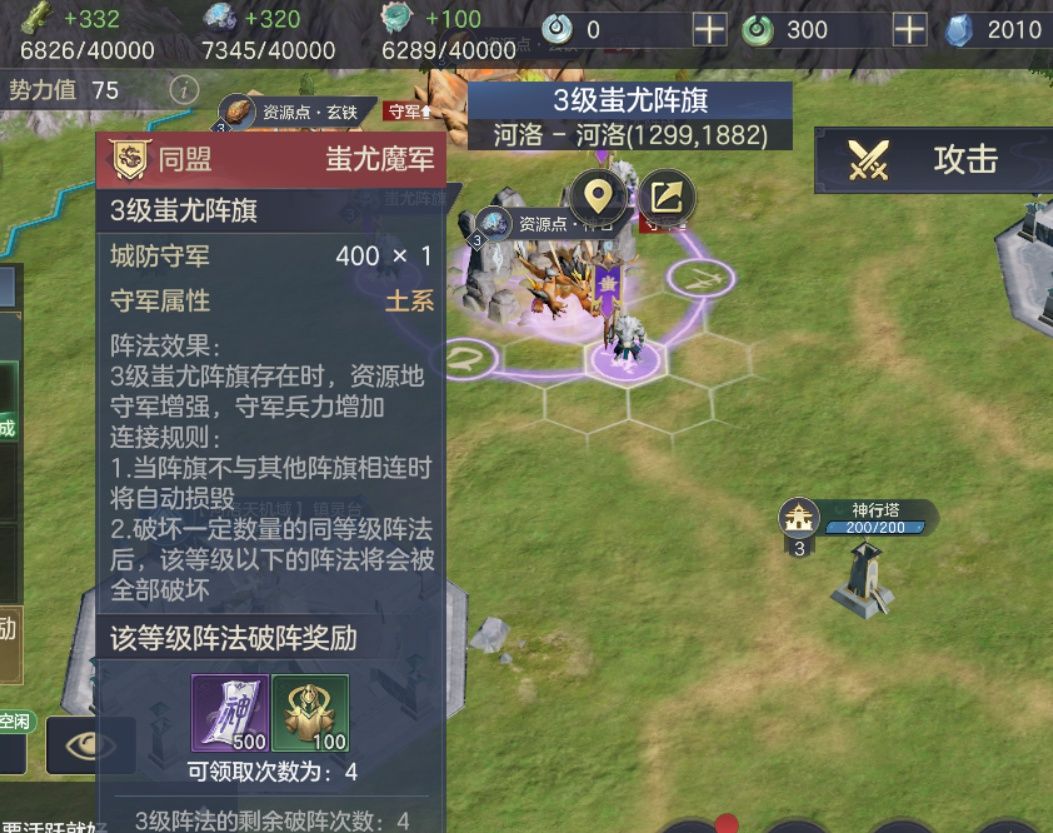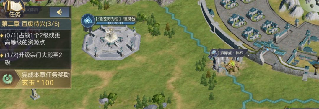 打3级地记得优先选驻地一圈有地仙任务的(地图小格子上有个玄玉图标的就是),地仙任务只要打完格子上的资源地就行,一个给50玉。