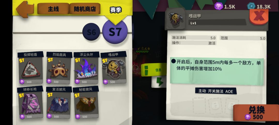 这个就比较奇思妙想了,起初因为维京战斧普攻清图效果差搞得脑袋大,我就想如果能让普攻带分摊就好了,于是就开始翻图鉴查看装备技能,没想到还真找到了这件s7的装备嗜战甲,装备技能描述‘增加平摊伤害’,根据我对游戏的理解,增加是直接加属性而不是提升固有属性,我猜测这件装备应该会生效,结果还真能用,哈哈哈。